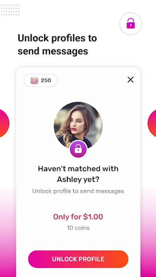 Dot Dating is a new dating app where you can simply unlock a profile and send message to them by using coins, which you can earn by watching ads or buy with various discounted packages.