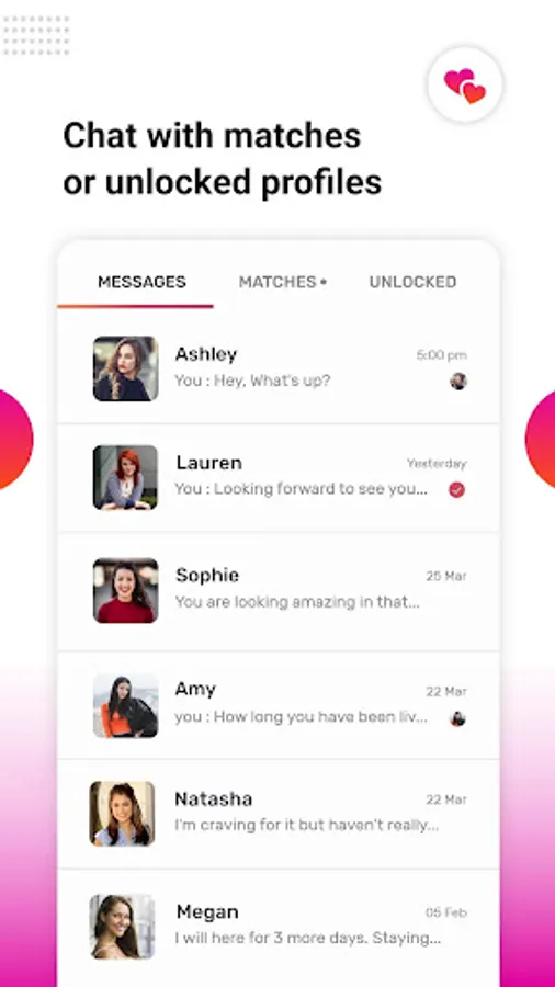 Our dating app lets you earn coins which you can use to unlock profiles. That means, you can browse and chat with as many profiles as you want without spending money.