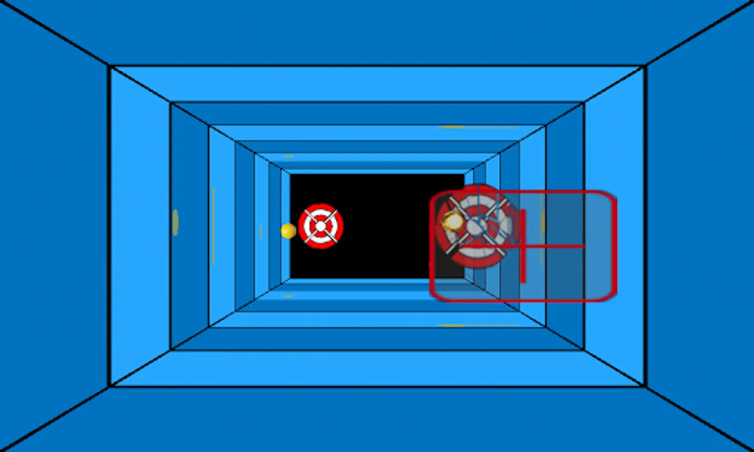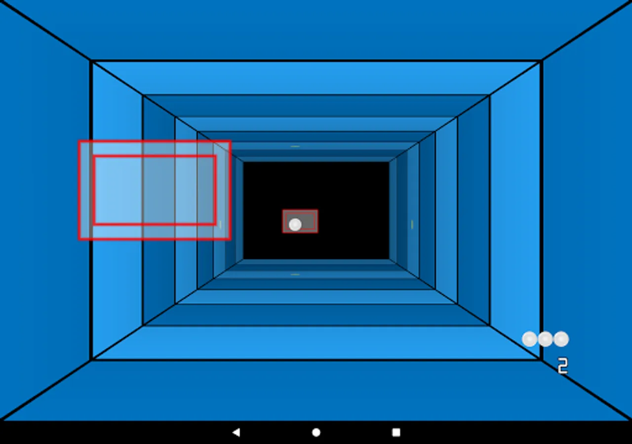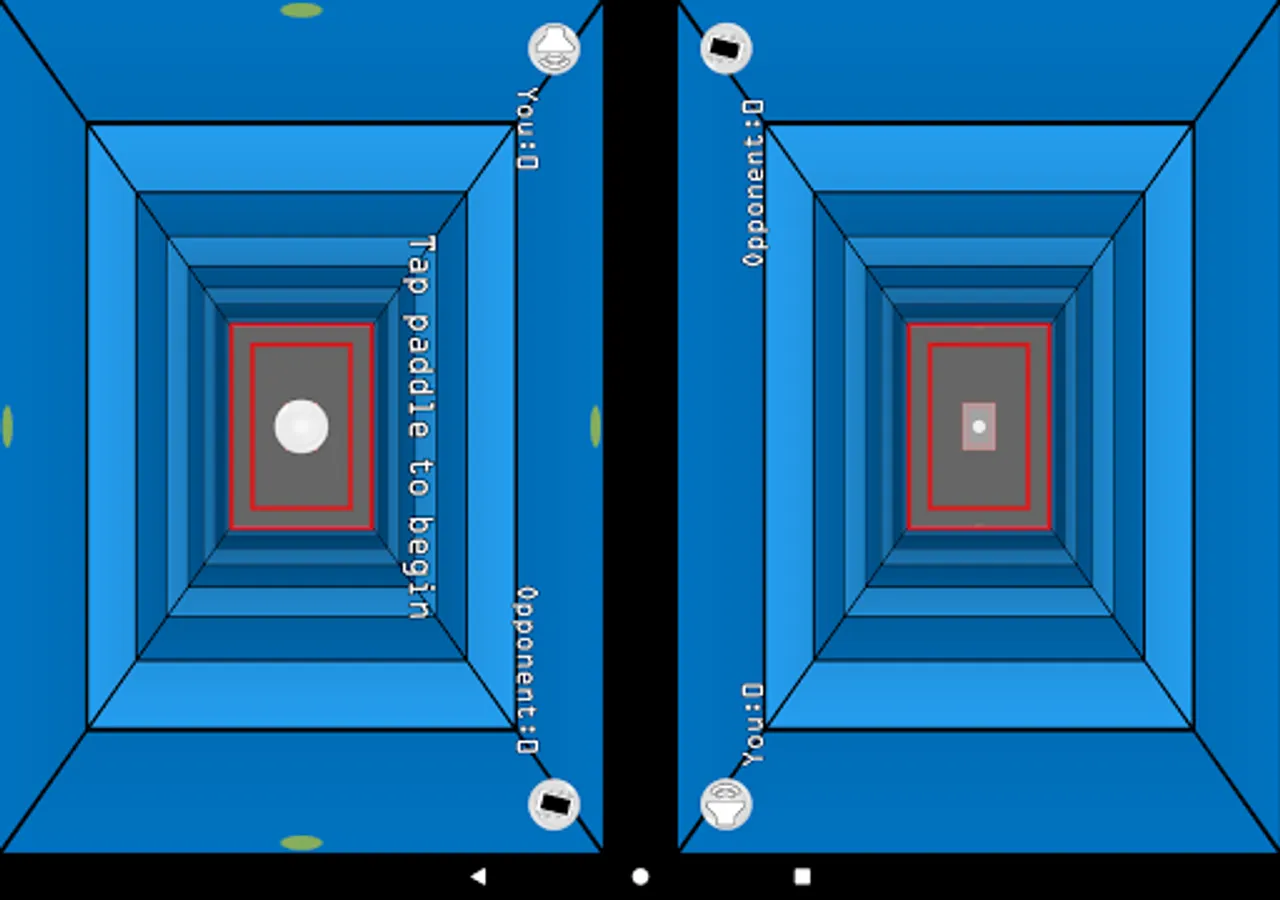 A ball bounces around in 3D space while you try to keep it from passing your side with your touch or joystick-controlled paddle.