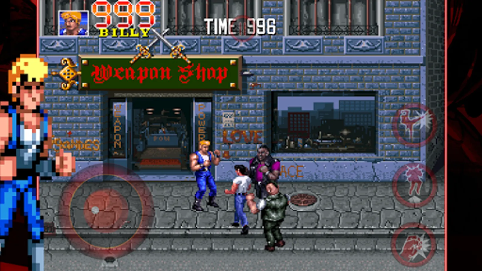 Enter Double Dragon Trilogy, a compilation specially optimized for mobiles and which includes all three installments of the beloved arcade series: Double Dragon 1, 2 (The Revenge) and 3 (The Rosetta Stone). The first one begins with Billy and his brother Jimmy, two martial arts experts, in a mission to rescue Billy's girlfriend, Marian, who’s been kidnapped by the Black Shadows Gang. All your favorite moves are here: punches, kicks, elbows, knees, head-butts and an assortment of not-exactly-street-legal weapons.