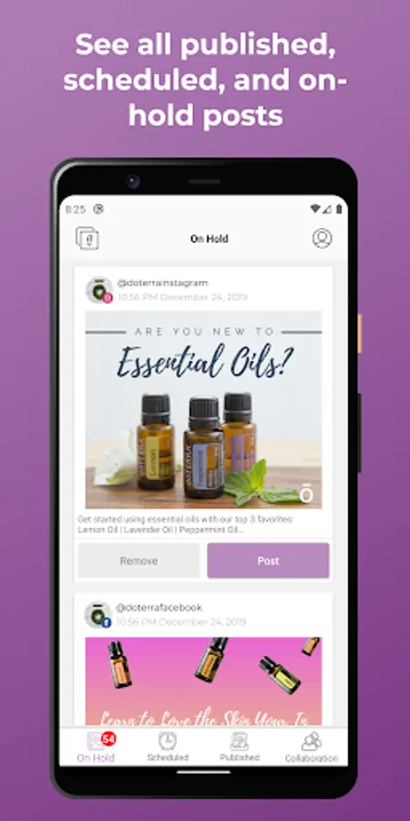 Stay involved in social media promotion with doTERRA Social on the go. Approve suggested on-brand content and get notifications about new suggestions.
