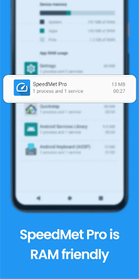 - SpeedMet Pro is RAM friendly, uses less RAM.
