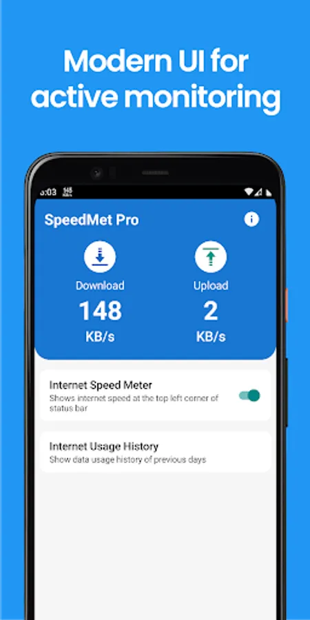 - Not only service, it provides you with a modern, good looking UI, so that you can monitor internet speed actively. (Umm, check your internet speed while downloading and make sure your ISP is not cheating with you).