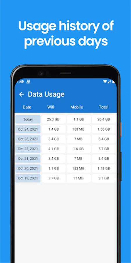 - Data usage history of previous days is available in the data usage section.