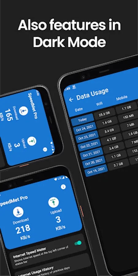 - SpeedMet Pro shows internet speed at the status bar.