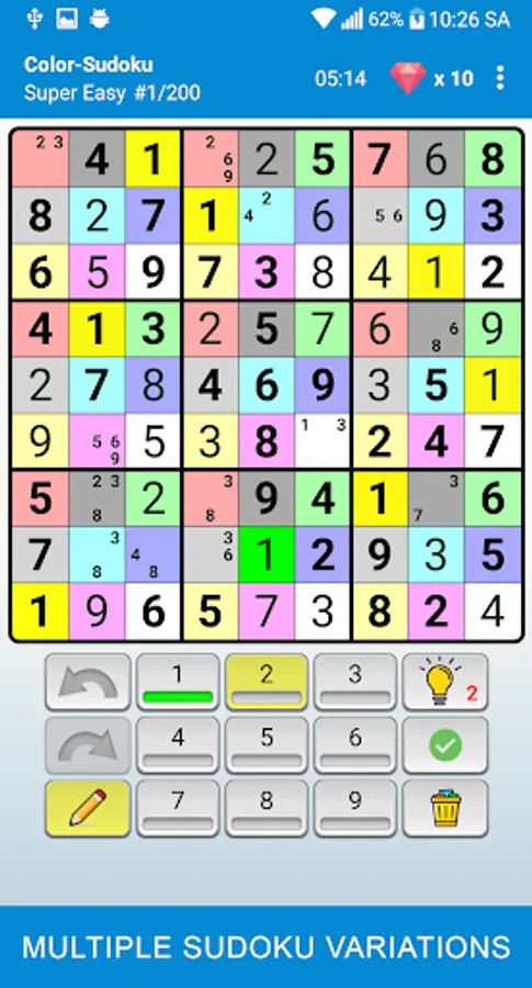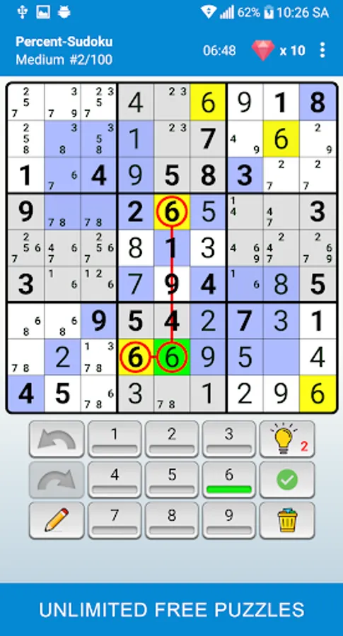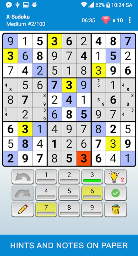 ★ Sudoku game that brings many features to assist you solve the puzzle easier. You can get help if this challenge too difficult. Automatic error checking feature and highlight the duplicate cells helps you a lot in the process, try to take advantage of it. Don't forget to pencil in if you're not sure.