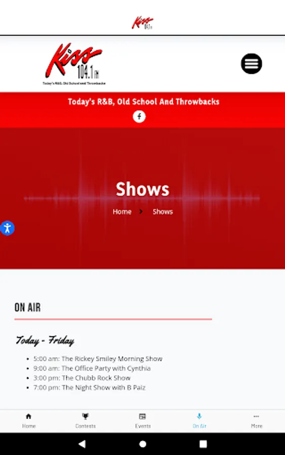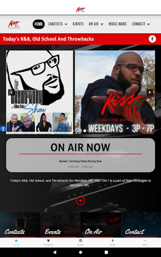 WZKS (KISS 104.1) is Meridian's only Urban Adult Contemporary station. Featuring the syndicated "Rickey Smiley Morning Show", "Michael Baisden in the Afternoons", and "The Sweat Hotel", with Keith Sweat at night. We also offer LOCAL, LIVE talent with "The Office Party" with Cynthia and the "Feel Good Friday Mix" with Jigga JT. Saturday's & Sunday's we bring our listeners the "Weekend Soul Food Show" with DJ 9, "Diggin in the Crates" with Chubb Rock & the "Joy In The Morning Gospel Show" with Pastor Louis Johnson. Download our app to listen live , sign up for contests, or connect with our DJ’s!