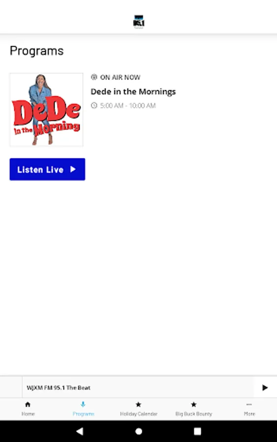 WJXM (95.1 The Beat) is always keeping it fresh with cutting-edge programming that features "The Breakfast Club" morning show. We also include LIVE, LOCAL talent with "The Midday Show" with Jatara. This show features the "All Request Lunch Hour". Then it's Jigga JT! Jigga features "The Beat Mix at 5!" followed by "The #1 Primetime Show" with Cory Moe. Cory Moe has "The 8 O'Clock Mixdown", the "New Joint of the Night" & "The Primetime Mix!” Download our app to listen live , sign up for contests, or connect with our DJ’s!