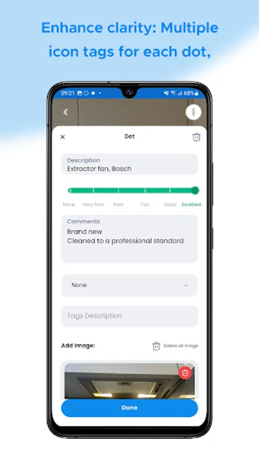 2. Add annotated Dots to areas of concern or describe an item: Highlight areas of concern and provide detailed descriptions by adding annotated Dots directly onto the app.