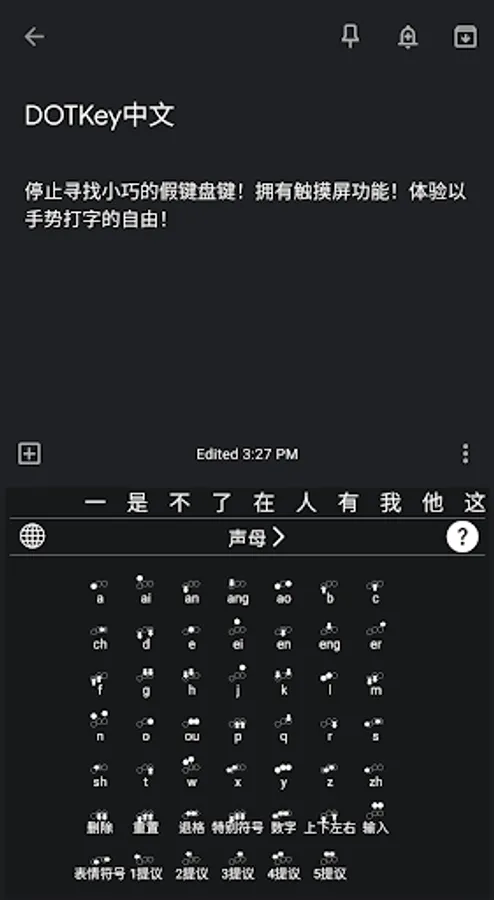 If you are not familiar with DOTKey, we recommend that you practice first before making it the main keyboard. Using the exercise function in the app can increase the speed and speed of input in just one week. When you are ready to switch, just enable DOTKey and set it as the primary keyboard like other third-party keyboards. Please refer to the in-app menu item "Enable DOTKey" for more information on how to do this. For information about DOTKey, please visit our website: dotkeyboard.com