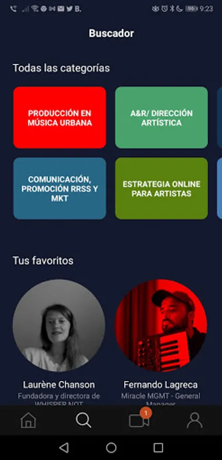 Busca entre las categorías de "expertise" a los/las profesionales que más te interesen y elige al que más se ajuste a ti.