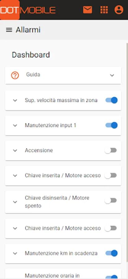 The DOTMobile Suite App improves customers peace of mind and experience by making easier to track, monitor and command their key assets. It includes unique functionalities, such as alerts notifications management - towing, unlimited geofencing entry or exit, the Immobilizer. The DOTMobile App requires DOTMobile devices to be installed on board. To learn more see https://dotmobile.com/
