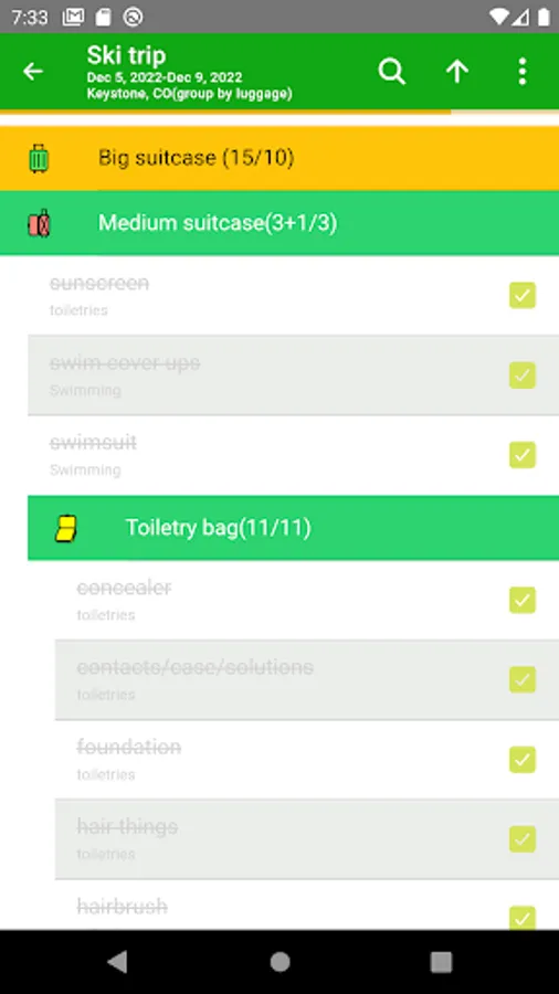 But that's not all! Packing List 2 also offers helpful features such as group items by luggage or locations, and the ability to share your lists with friends and family. And with automatic syncing across all your devices, you can access your packing lists anytime, anywhere.