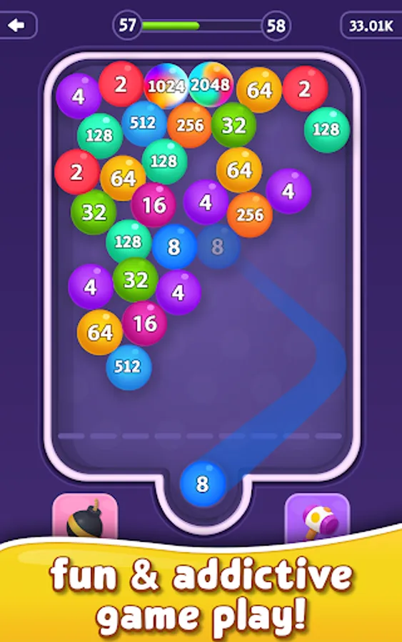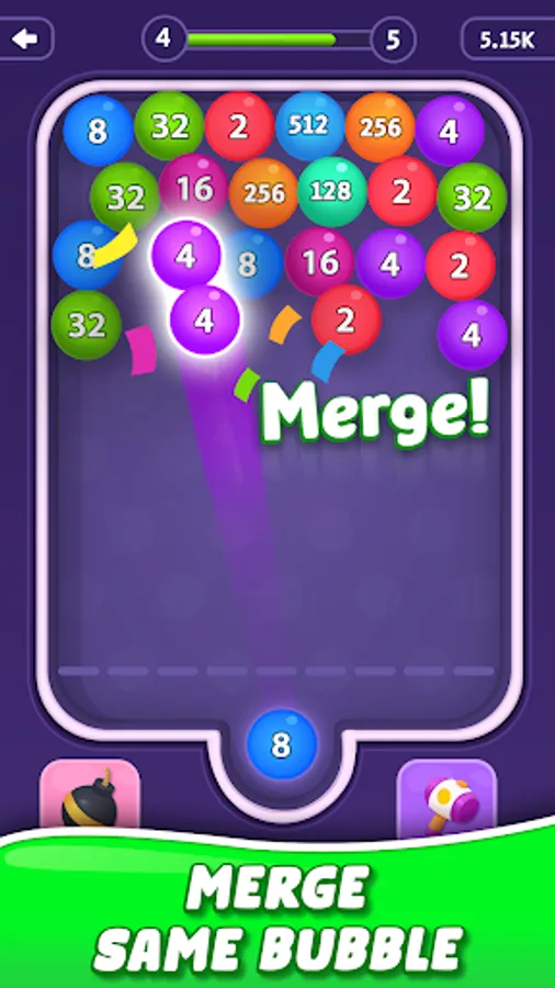 With its fast-paced ball-shooting gameplay and challenging 2048 puzzle mechanics, Bubble Merge is the perfect game for anyone who loves a good blockbuster-style bubble shooter. And with its colorful graphics and catchy soundtrack, you'll be hooked from the very first shot.
