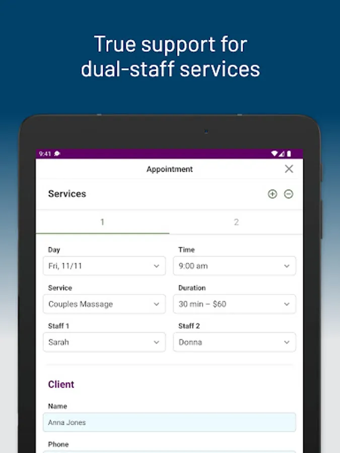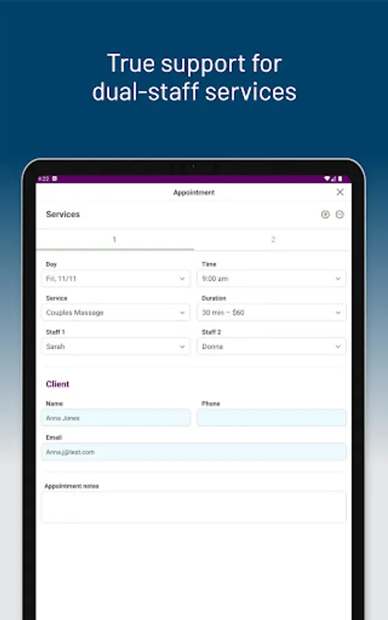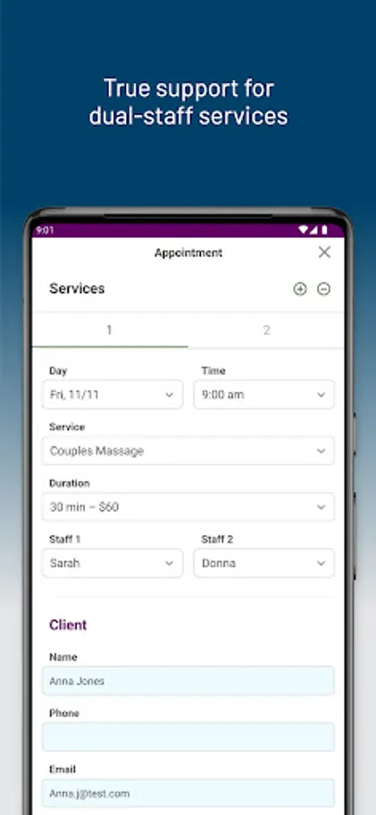 - Flexible appointment scheduling with support for dual-staff services and multi-service appointments
