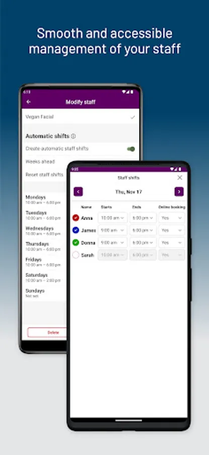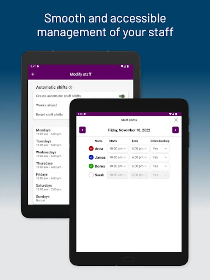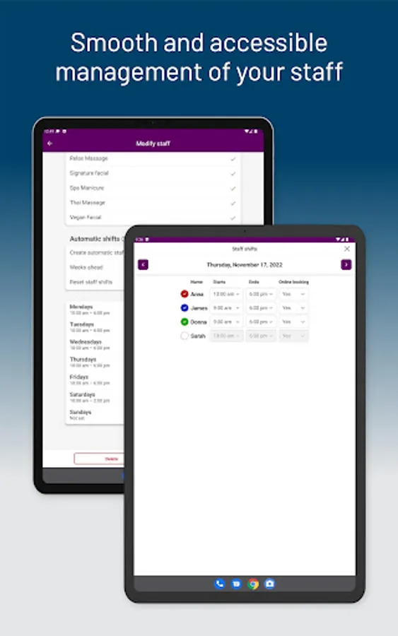 - Easy access to staff shift schedules