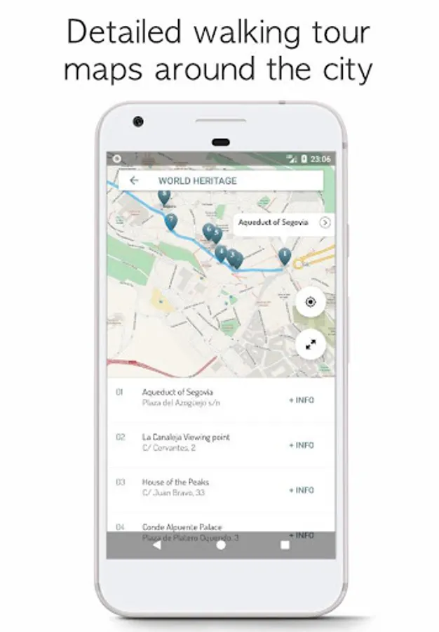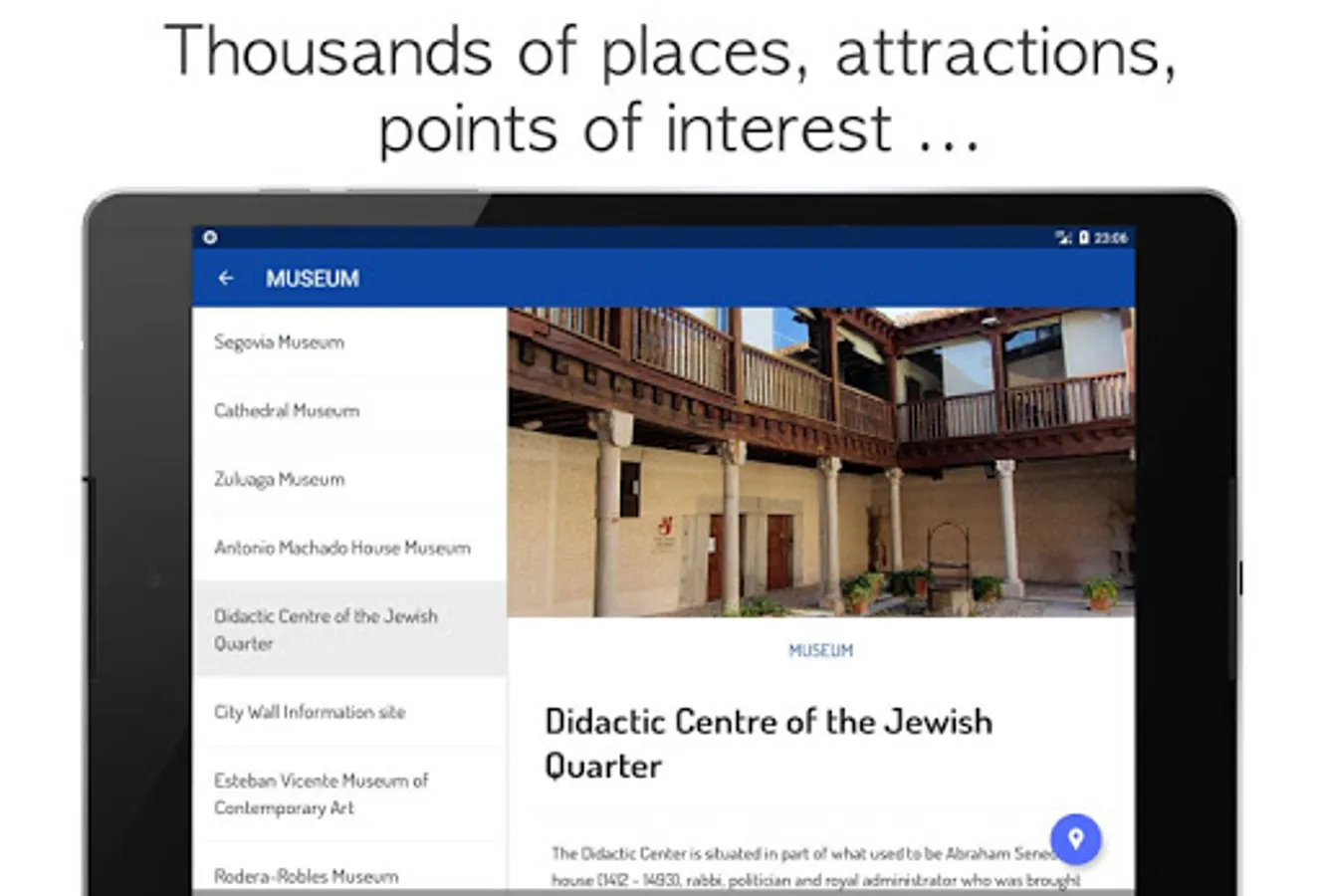 It also doubles as a detailed map of the city and province of Segovia with which you can find your way to other attractions by GPS. It works offline, you don't need an internet connection.