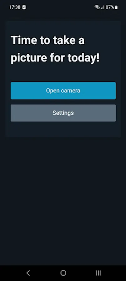 Photolog is an app that reminds you to take a photo every day. You can configure the reset, when the app reminds you, and how persistent that reminder is.