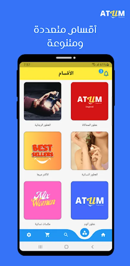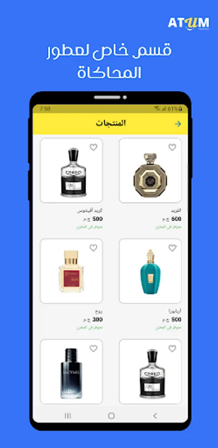 يتميز تطبيق أتوم للعطور بالسهولة والامان وسرعة تلبية رغباتك وقد صممنا التطبيق الخاص بنا بطريقة فريدة وسهلة تجعل تجربة المستخدم سلسه بدون أي تعقيدات ويمكنك من خلاله التنقل بسهولة ويسر داخل التطبيق والتعرف علي جميع منتجاتنا ويمكنك بضغط زر واحدة الحصول علي ما تريد بمنتهي البساطه ، يحتوي التطبيق علي أقسام متعددة ومتنوعة لأرضاء أزواق جميع العملاء ، ستجد قسم لعطور أتوم الخاصة وهي عطور أصلية صممت حصريا لنا ، كما ستجد عطور محاكاة لعطور عالمية بجودة ونقاء العطر الأصلي ولكن بأسعار مميزة جدا ، وأيضا قسم خاص لعطور التركيب ، وأقسام أخري للعناية بالجسم والبخور والمعطرات المختلة ، تنوع المنتجات يعطيك تجربة تسوق مميزة ، ستجد في تطبيق أتوم كل ما تريد من سهولة وأمان تام لبياناتك وسرعة في توصيل طلبك ، خدمة عملاء ستكون معك لحظه بلحظة بمجرد اجراء عملية الشراء حتي وصول المنتج أليك ، يعمل تطبيق أتوم للعطور علي تقديم تجربة فريدة ومتعة في التسوق لعملائة