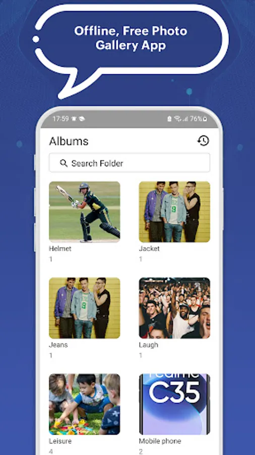 With this app on your android device, you no longer have to search for pictures. All you need to do is remember any object in the picture, and search for that object in the respective folder.