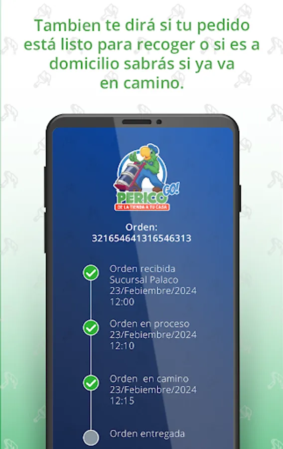 Use ElPericoGO to know the status of your order wherever you are, in real time!