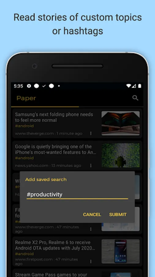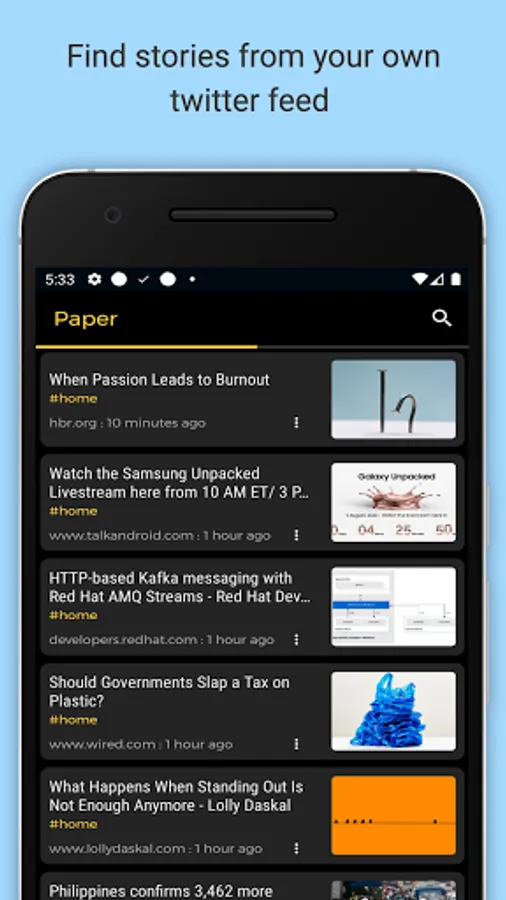 We all love a good story. Paper scans through your twitter feed, finds great stories and keeps a copy of it on your device for you to consume at your leisure. You can also add hashtags to find stories that interest you .