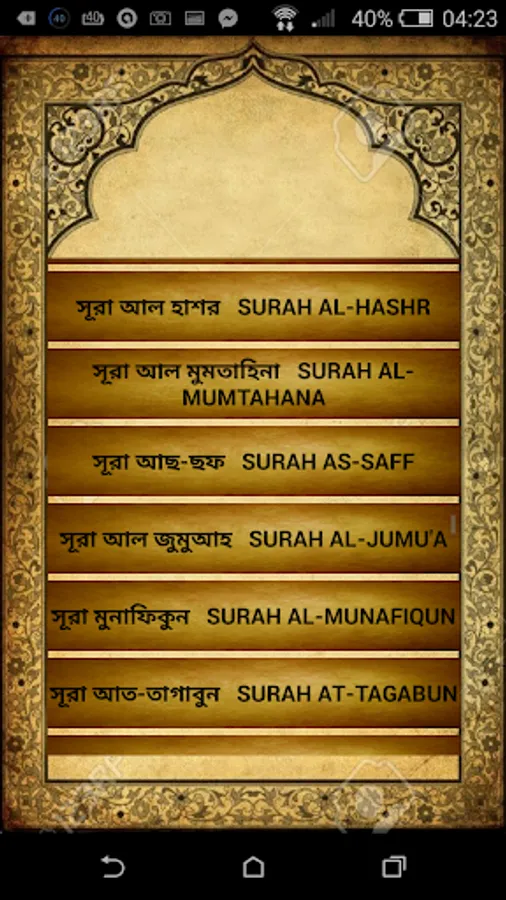 এই App এ আপনি কুরান শরীফের সব সুরার বাংলা অনুবাদ,ব্যাখ্যা সহ তাফসির,মধুর কুন্ঠ এ তেলাওয়াত শুনতে পারবেন