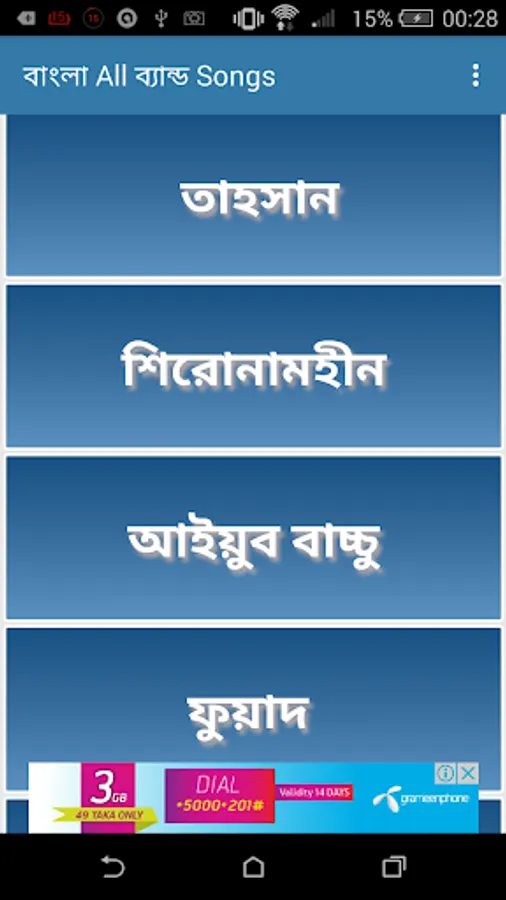 Band গান বাংলাদেশে তুমুল জনপ্রিয়। আর তাই এই অ্যাপ এ আছে সব ব্যান্ড গানের সমাহার!!!