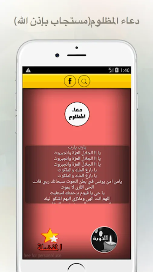 ✓ the possibility of sending a prayer oppressed to a friend via text message