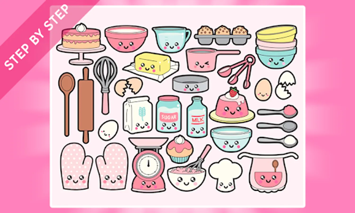 All of the tutorials on drawing adorable food are available for free. Simply download the application, choose any sweet food you prefer, and start learning to draw.