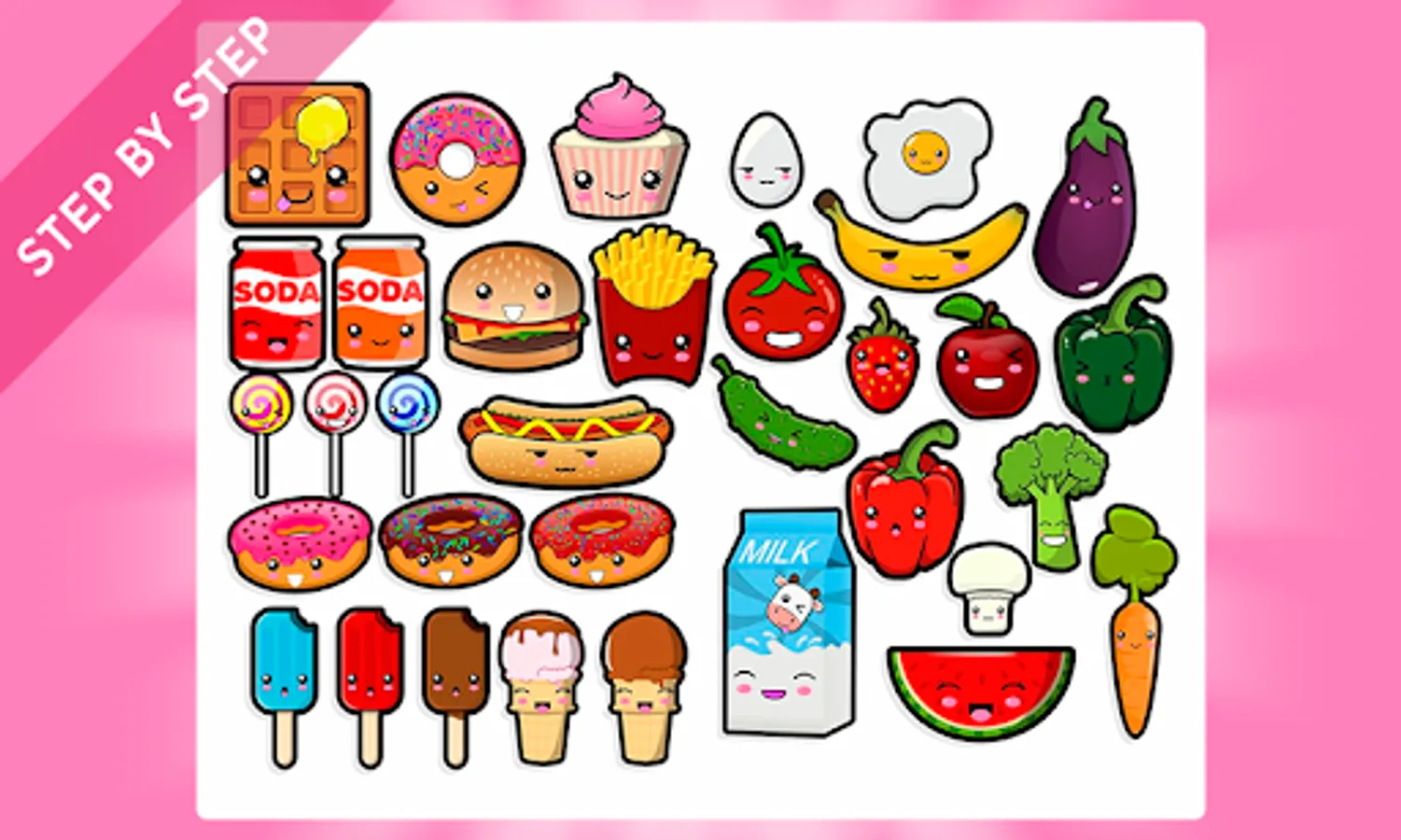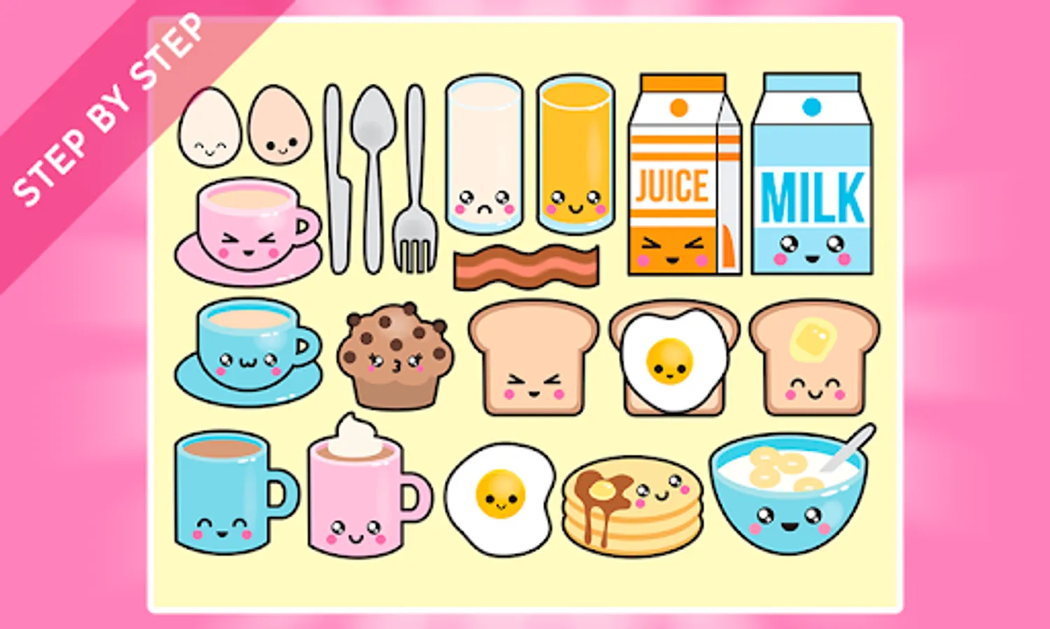 Today, there are a ton of people who want to learn how to draw, but many struggle mightily. You can quickly and easily learn how to draw adorable food with the help of this application.
