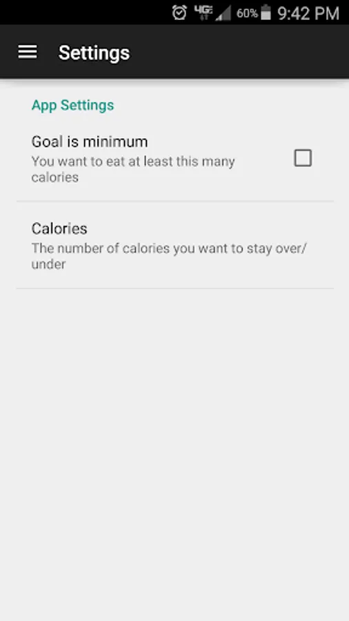 To use, first open settings and set your daily calorie goal. You can also set whether this goal is a minimum goal or a maximum limit. Then, simply enter the name of the food or drink and the number of calories associated with it. The Simple Calorie Counter will keep track of it for you, and remember your items for easy input later.