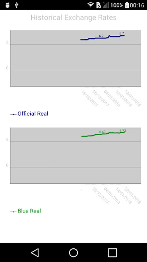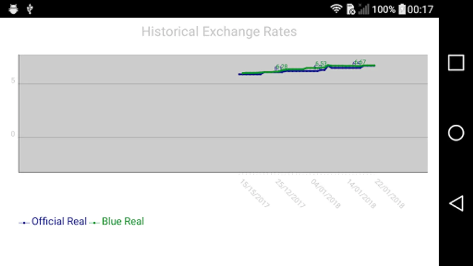Compare historical exchange rates of one Real and one Blue Real (parallel)!