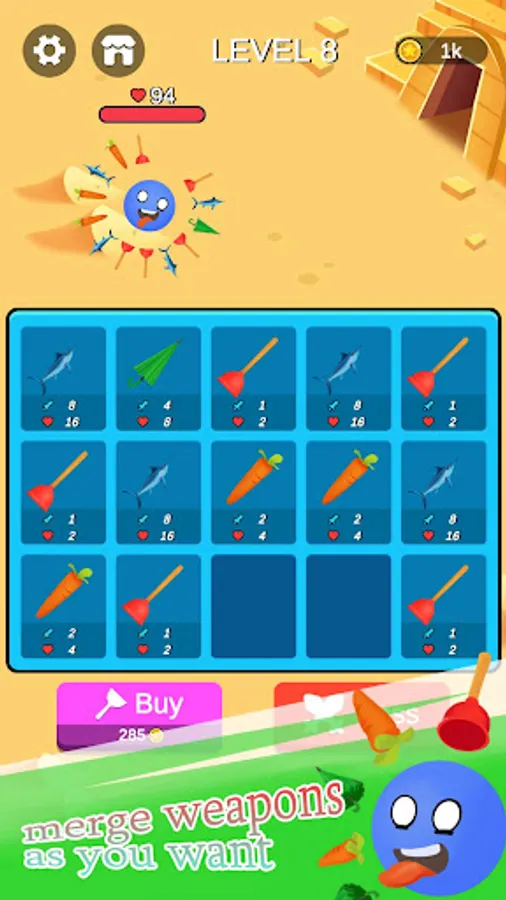 Merge weapon is a real-time battle game for everyone. You need to make and merge weapons, and defeat the enemies in the level to get a lot of rewards.Download it for free and enjoy it!