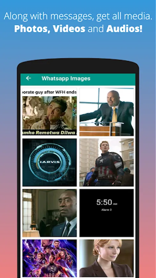-> List of Images, Videos, Audios and Voice notes for supporting apps like Whatsapp, Telegram. (Media Auto download should be on for that app)