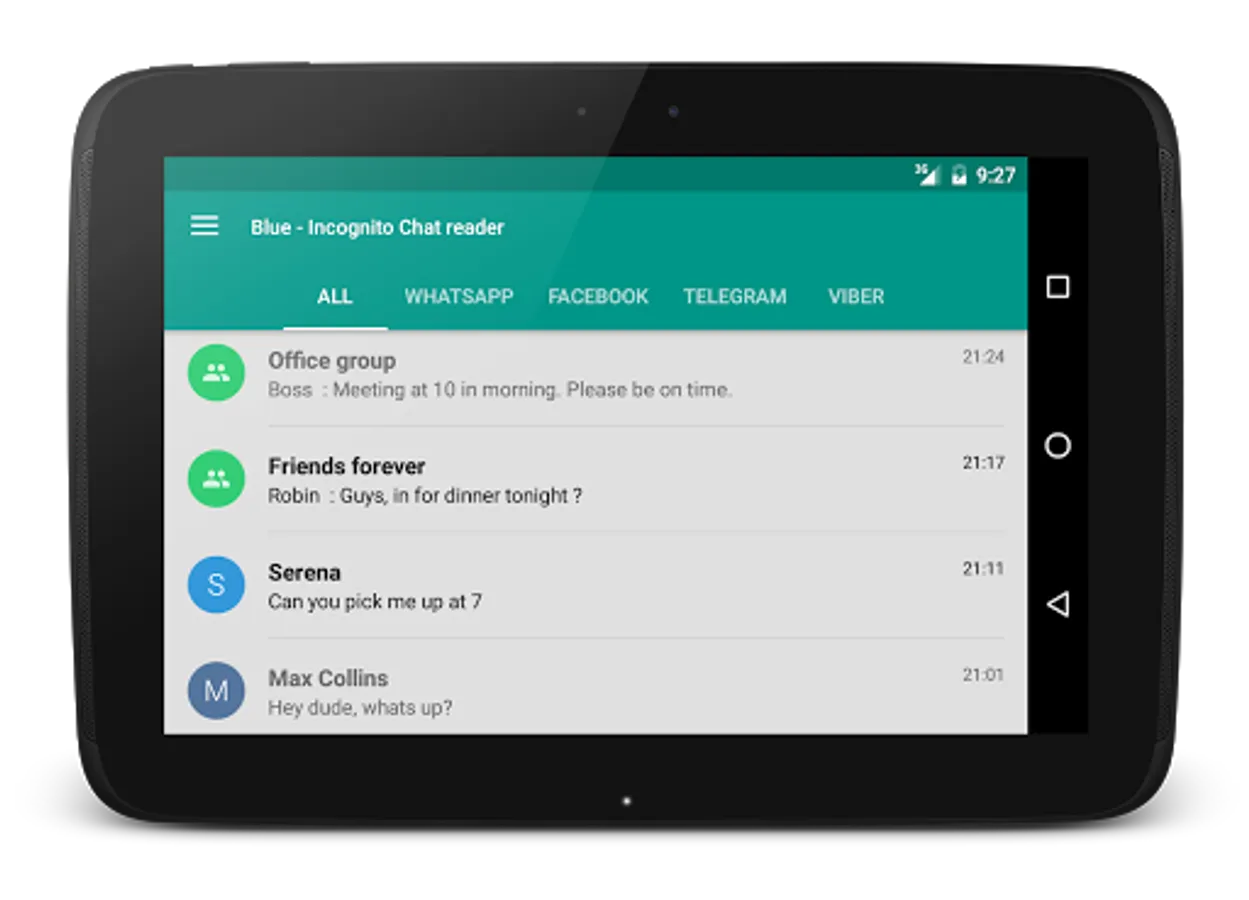 Designed for chat apps like WhatsApp, Telegram, Facebook messenger, this app shows you the messages received on any of these apps. You can read the messages from this app instead of going to that chat app. Simple!