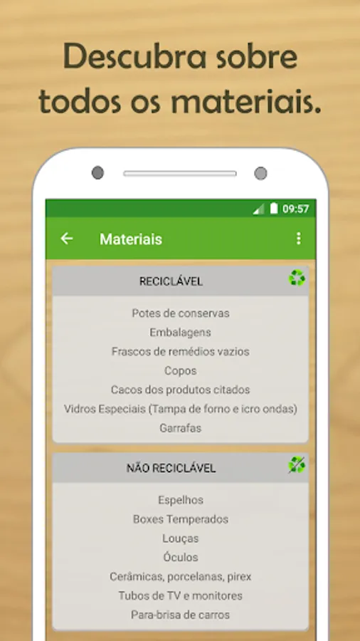 ★ View the types of materials and know which ones you can or can not recycle.
