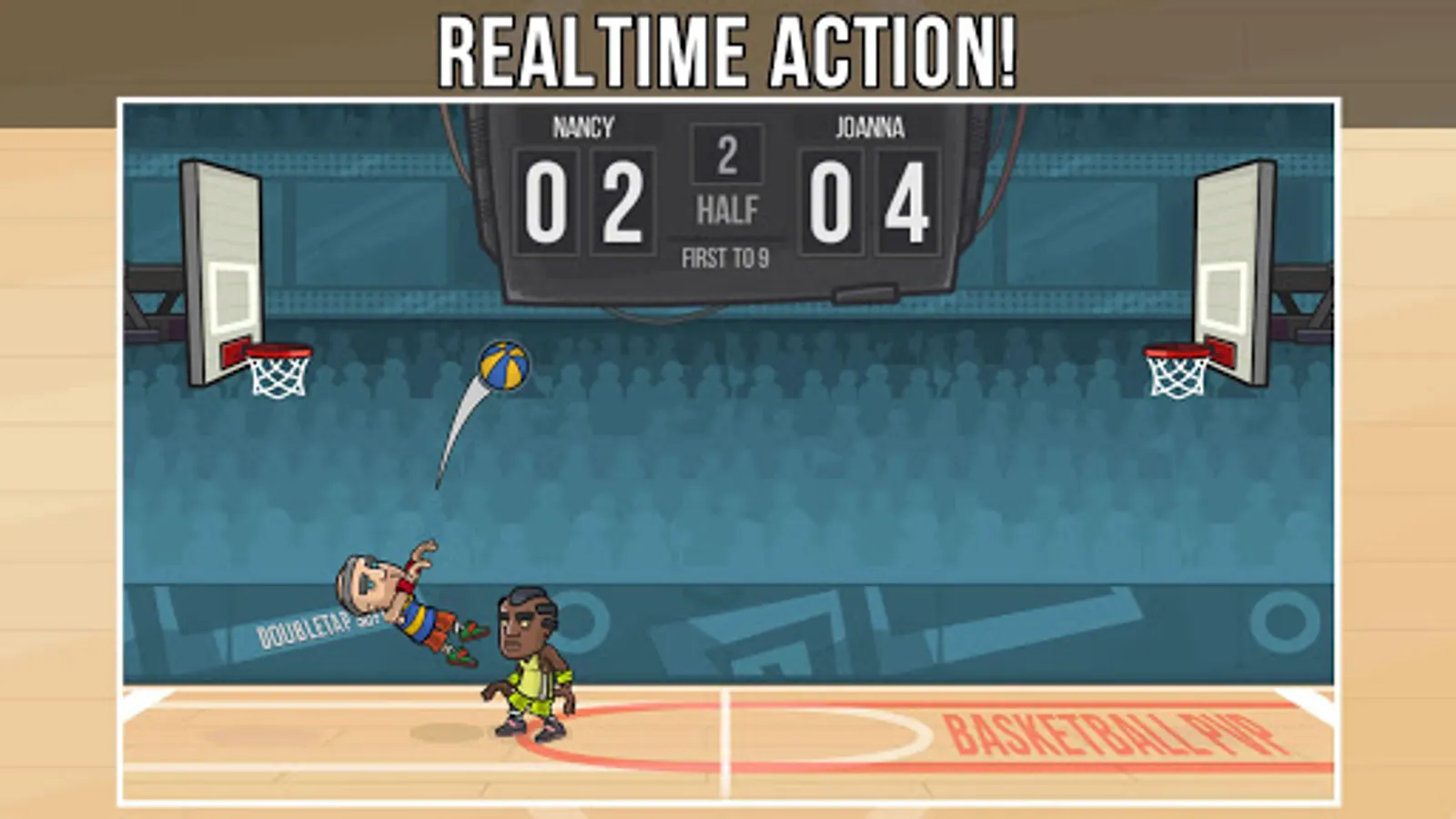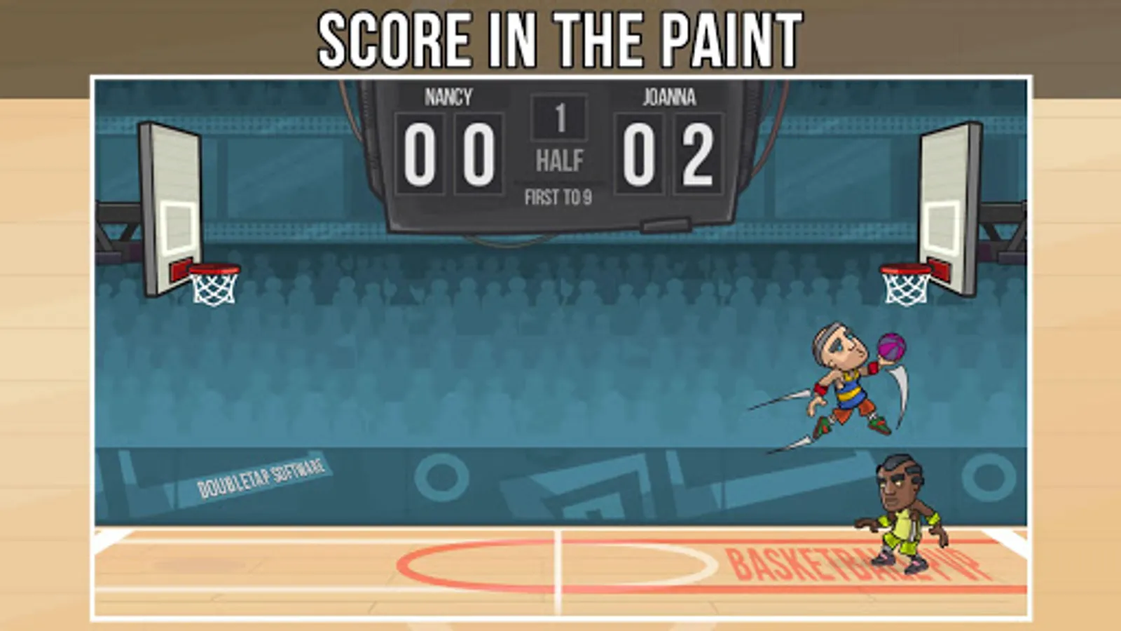Realtime online 1 on 1 basketball! Pump fake and drive to the hoop, or shoot pretty fade aways!