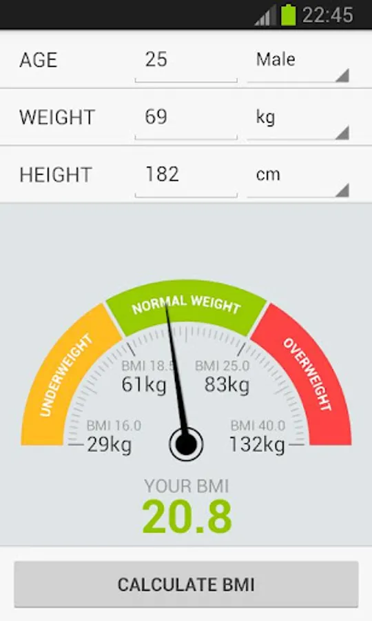 The Body Mass Index is a way of seeing if your weight is appropriate for your height. Inaccuracies can occur if you're an athlete or very muscular as this can give you a higher BMI even if you have a healthy level of body fat. Also this app is not appropriate for women who are pregnant or breastfeeding, or people who are very frail.