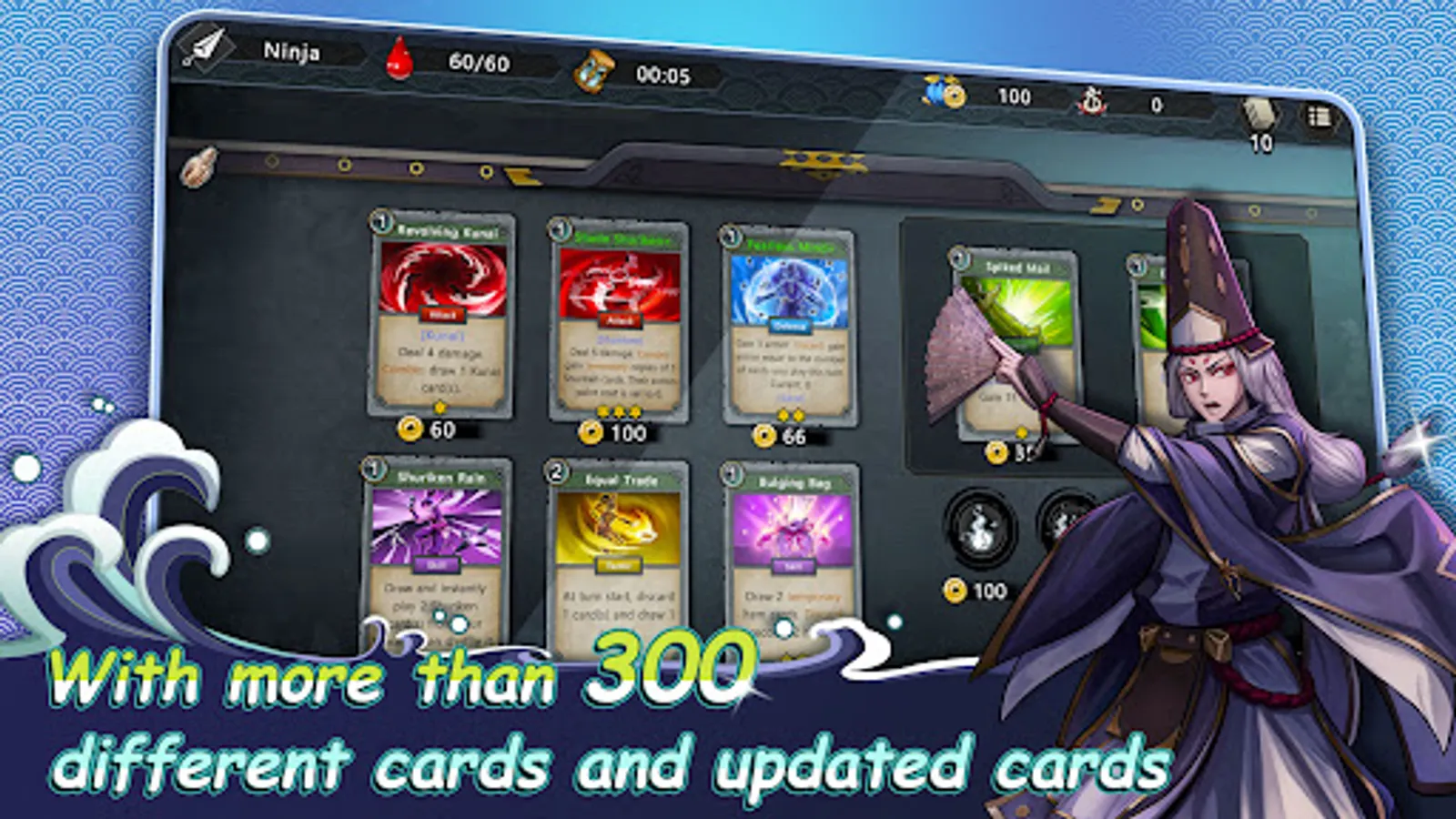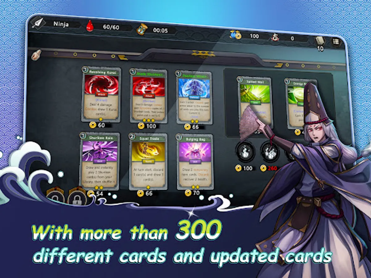Four distinctive classes - the Monk, Samurai, Onmyoji, and Ninja, each with their exclusive set of decks. With more than 300 different cards, you will be able to build your own deck based on the class you have chosen to challenge those bizarre monsters from Japanese folklore.