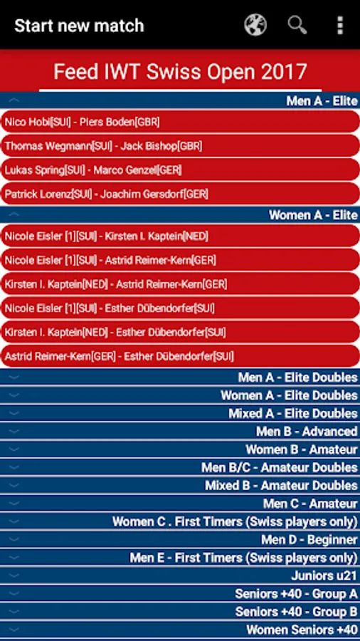 • select matches listed on e.g. fir.tournamentsoftware.com