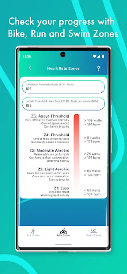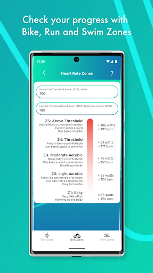 Training Zones are set for all disciplines, you can simply use Relative Perceived Effort (RPE) if you like to train by feel. If you have a bike power meter then you can undertake the suggested tests to set your Functional Threshold Power (FTP) and if you have a heart rate monitor you can set your Lactate Threshold Heart Rate (LTHR). Swim Zones can be set with Critical Swim Speed (CSS).