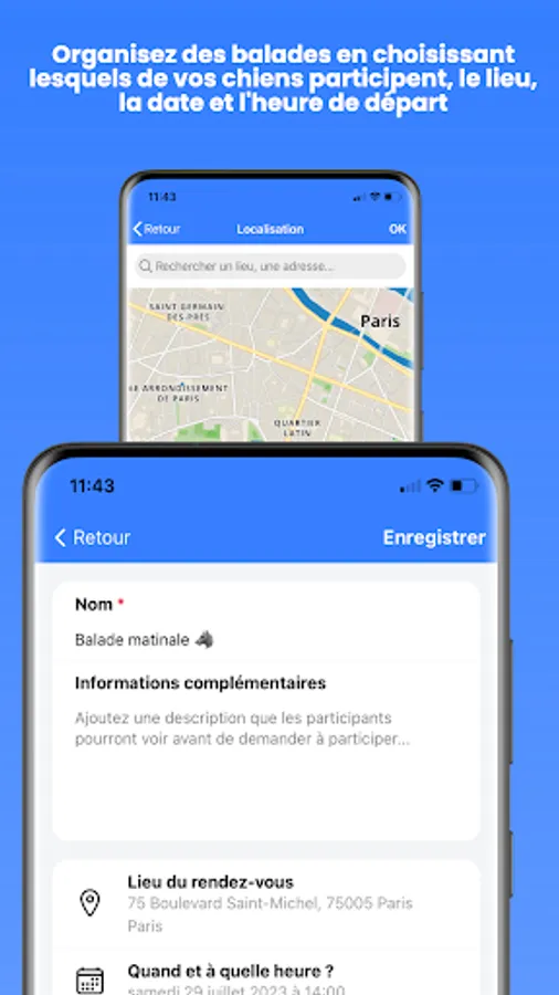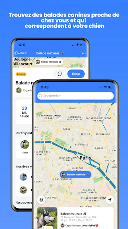 With our integrated messaging service, easily communicate with other owners, plan your outings, and share your passion for doggies.