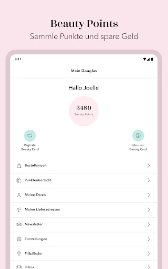 • DOUGLAS BEAUTY CARD: Collect valuable Douglas Beauty Points (currently only available in Germany) with every purchase in the app or our branches.
