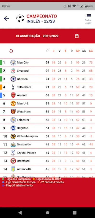 Ideal application to follow information from the main English Football League.