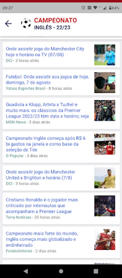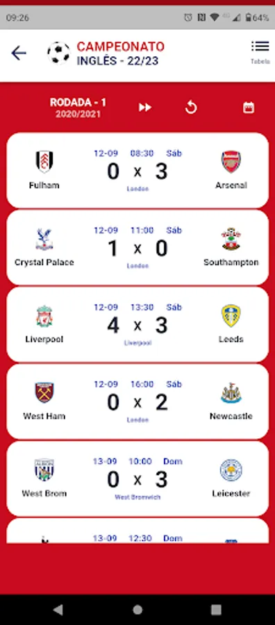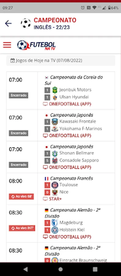 * Screen with games of the day.