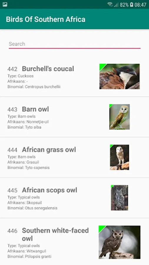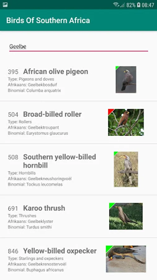 Birds of Southern Africa. The app includes 959 different kinds of birds that one can expect to find in the Southern parts of Africa. These birds are from South Africa, Botswana, Lesotho, Swaziland, Namibia and some other as well.