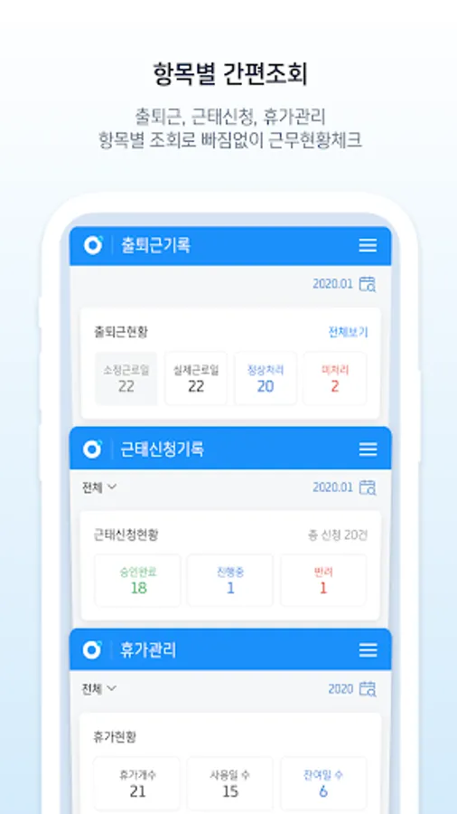 - Simple inquiry by item: You can inquire and manage work status by checking commuting, absenteeism and tardiness application records by item.