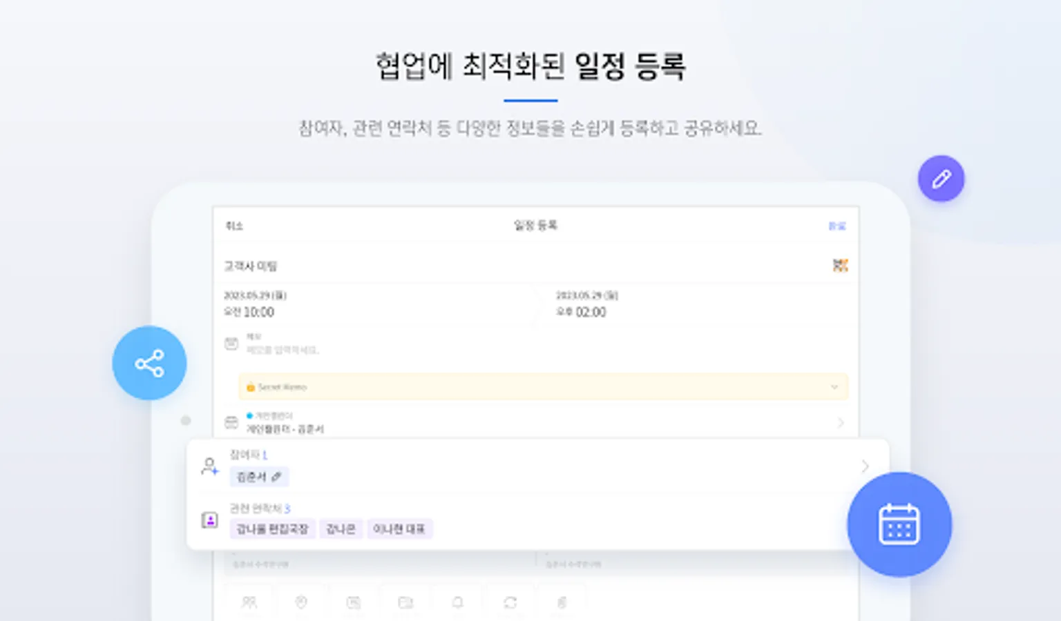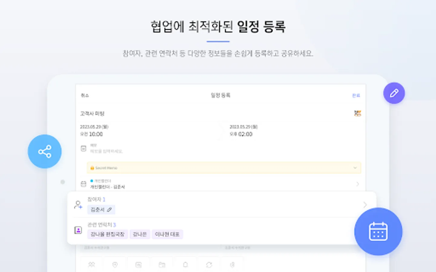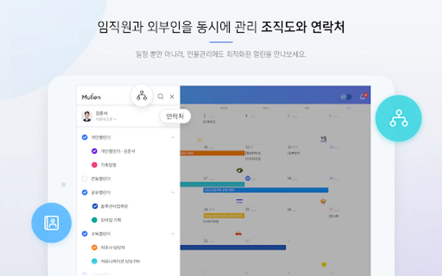 You can check the organization's schedule at a glance through individual, shared, subscription, attendance, and lunar calendars.