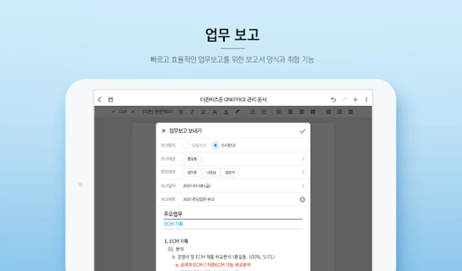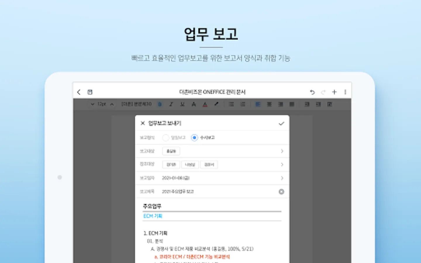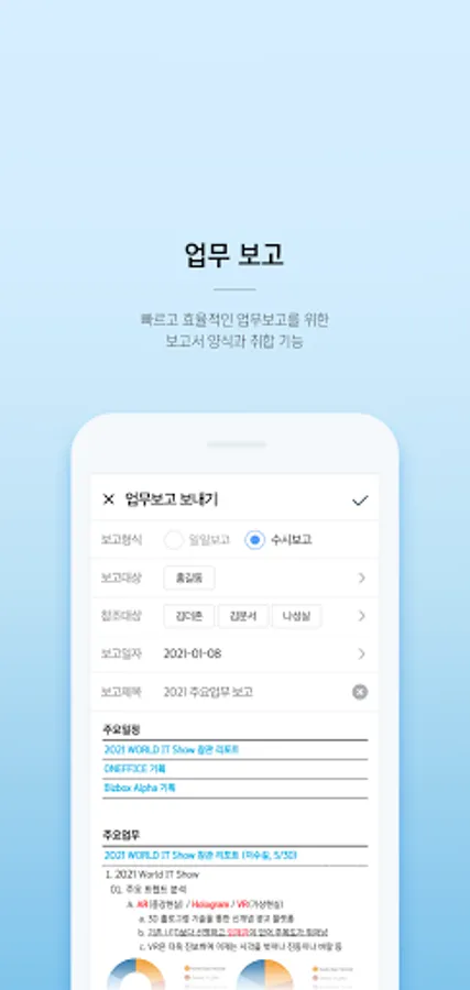 - You can easily create a business report anytime, anywhere, and report the received reports together.